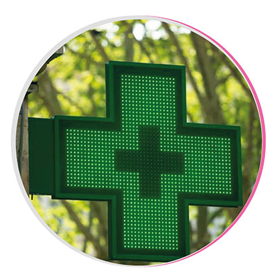 La croix de pharmacie doit permettre à votre officine de se démarquer dans un environnement encombré. Il s'agit de l'outil principal pour localiser votre pharmacie. Nous avons possibilité de programmer votre croix à votre convenance : heure, date, température, etc.